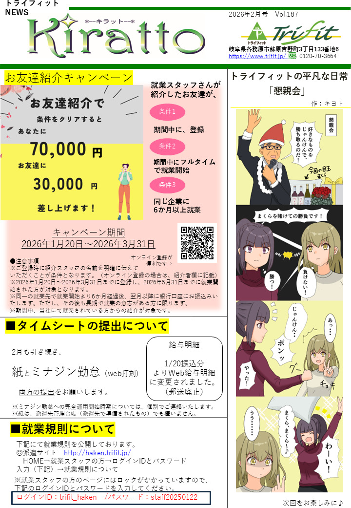 これまで給与明細と一緒に紙でお届けしていた、「キラット」が、